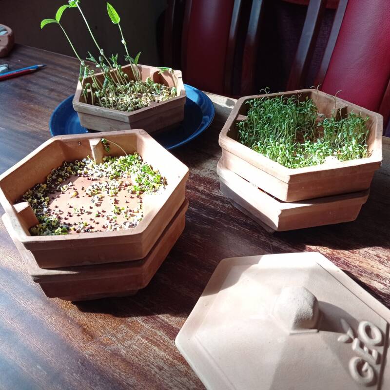 Wir sahen den selbst gezogenen Spossen beim Entwickeln zu ....